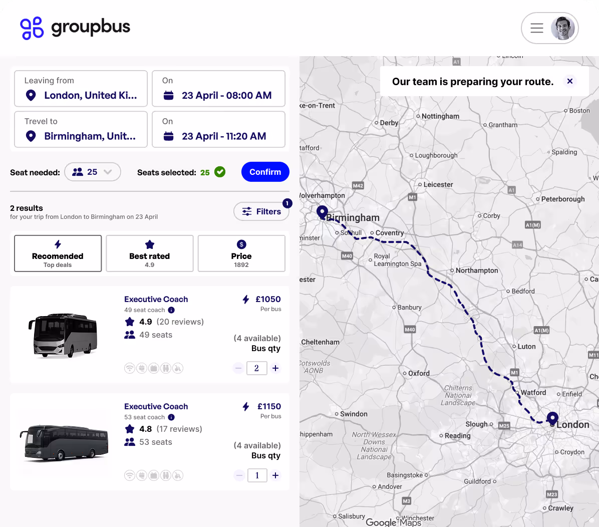 Most brokers simply compare prices and pass your booking to an operator. Groupbus is different and provides an end-to-end service. We design your transport plan, source the right vehicles for your group size and itinerary, plan timings and routes, brief operators and coordinate on the day.